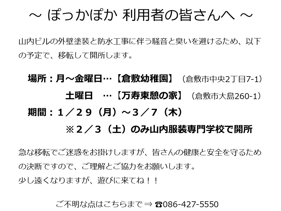 倉敷市内一斉臨時閉所のため8/30・31閉所のお知らせ